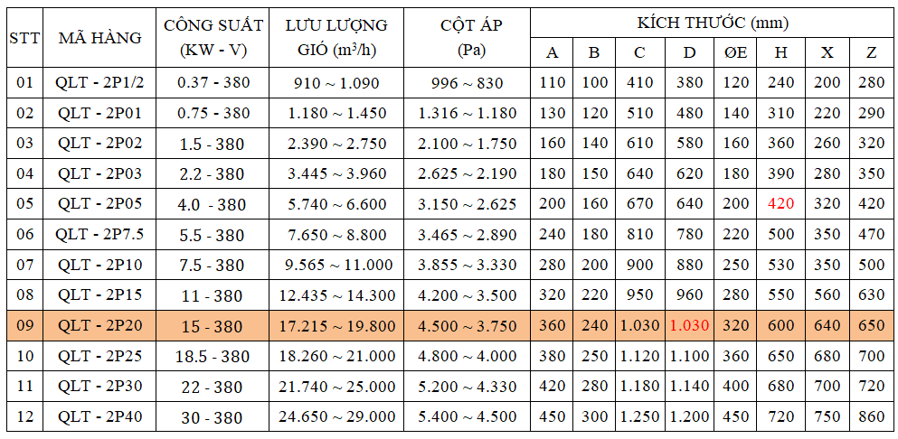 Quạt ly tâm cao áp QLT – 2P20